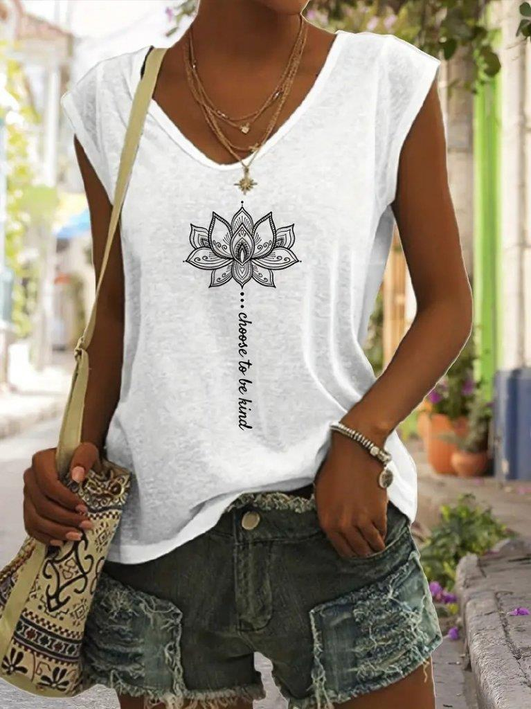 Kadın Kısa Kollu V Yaka önü Desenli Salaş Viskon Bluz