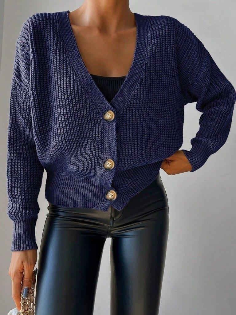 Kadın Uzun Kollu Düğme Detay Triko Bluz