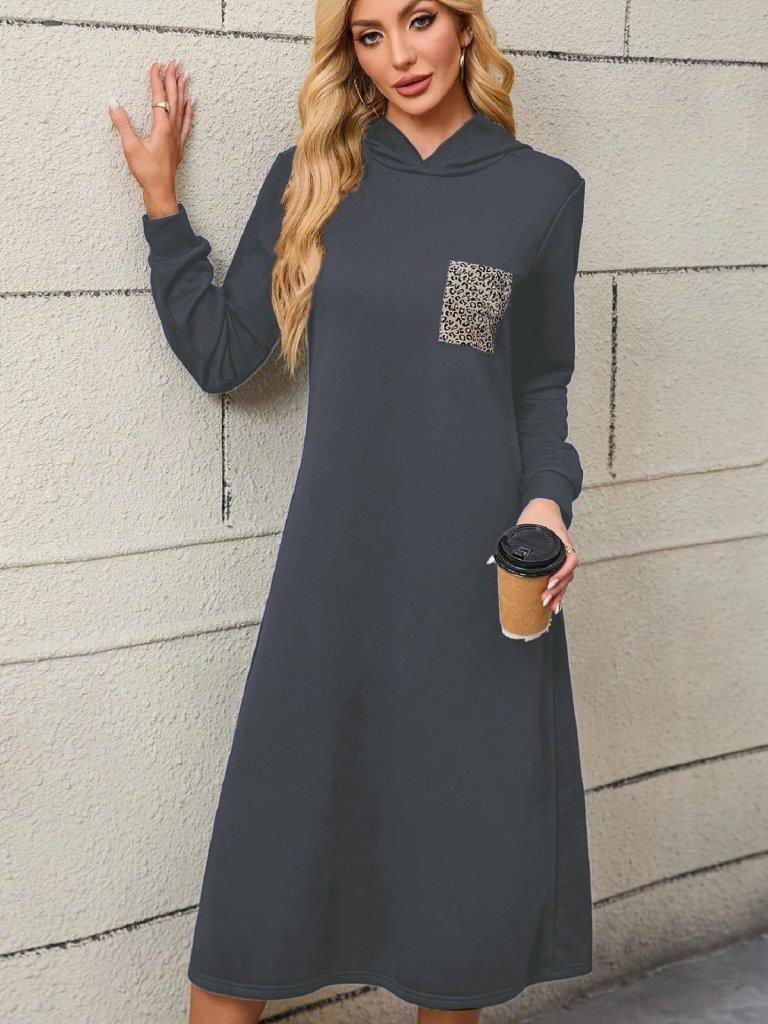Kadın Uzun Kollu Kapşonlu Cep Detaylı Viskon Iki Iplik Maxi Elbise