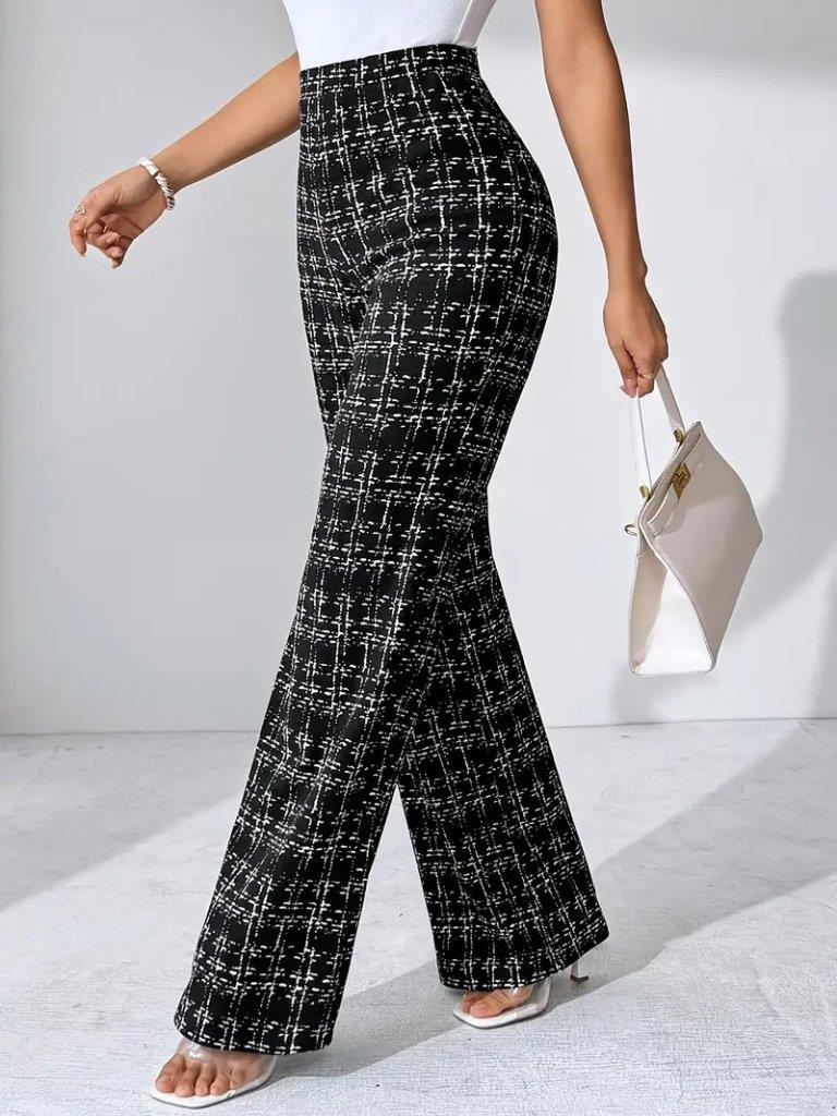 Kadın Yüksek Bel Paçaya Doğru Geniş Dokuma Pantolon