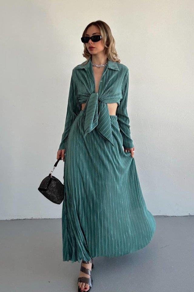 Mint Fitilli Gömlek Ve Uzun Etek Takım