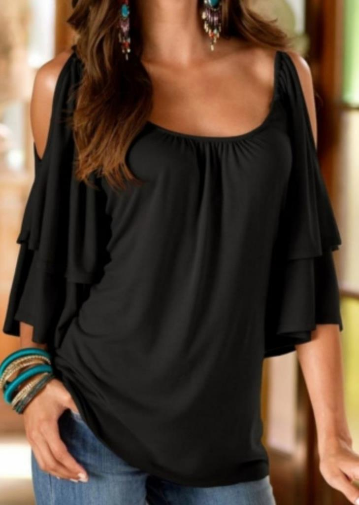 Omuz Detay Kolları Katmanlı Viskon Kumaş Bluz